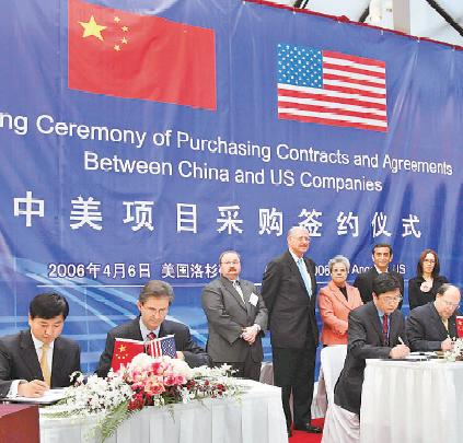 2006年4月,國務院副總理吳儀率領中國采購團赴美簽約,成交額達162億美元,創歷史之最。