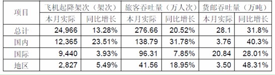 上海國際機場股份有限公司12月22日在上交所公示的《上海國際機場股份有限公司2009年11月運輸生產情況簡報》顯示,無論從飛機起降架次、旅客吞吐量和貨郵吞吐量來看,國內業務都延續了前幾個月的表現,維持著穩定而且大幅的增長。