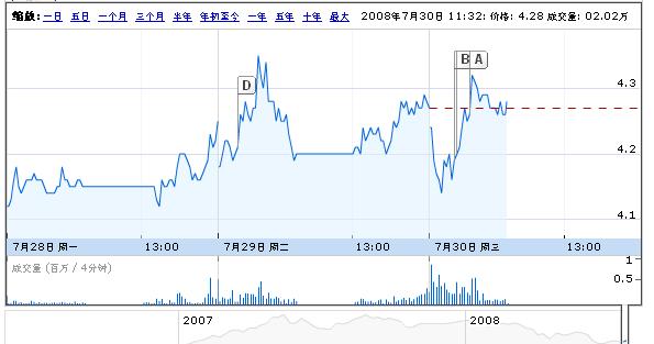 因此,四維控股提前預告,在2008年中期報告中,將預報1.7億的利潤虧損。另外的一則公告則是中國建設銀行重慶分行下屬江津支行與四維控股的貸款訴訟。