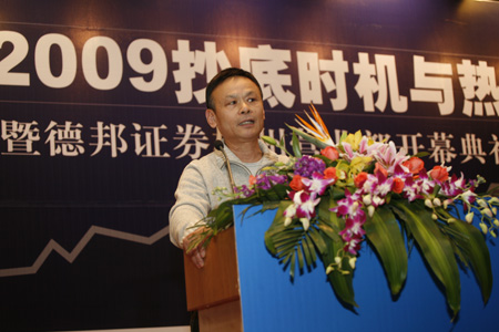 會上,著名節目主持人左安龍認為,做股票應該在別人貪婪的時候應該恐懼,在別人恐懼的時候貪婪,現在或許有機會。陸滿平教授詳細分析了2009年的宏觀形勢走勢以及股票投資的機會。