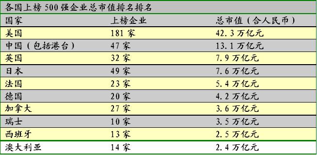 雖然日本和英國的上榜企業分別有49家和32家,但總市值均低于中國。