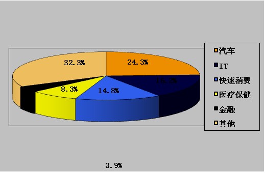 調查顯示,汽車、IT、快速消費、醫療保健和金融位列2010年度公共關系服務市場的前五位,市場份額分別為24.3%、16.2%、14.8%、8.3%和4.1%,其它如通信、互聯網、房地產、制造業、體育、文化等占32.3%左右,“汽車業務”重新奪回第一位置。