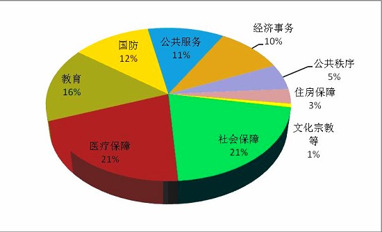 2009年經合組織國家政府開支結構示意圖 來源: OECD 統計署
