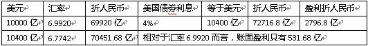 這里以人民幣當前兌美元的匯率6.7742、美國財政部公布的美國政府長期債劵的利息和實際收益為基數。