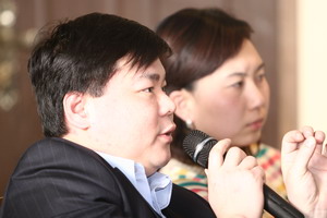 主持人:我覺得你的投資技巧很好。在稅收這么高的情況下,拿自己的薪水投資可以免稅。下面在座的還有什么問題,大家可以交流??梢钥闯鰜?,王定標是一個很健談,同時很開放,很坦直的一個人??赡芤话胍陨喜惶J識大家。大家對大旗,對新好耶的商業模式不太了解。