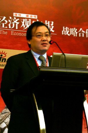 我個人認為,我不是經濟學家,我是根據我的本人的直覺,我認為各種不利的影響在上半年可能持續,甚至于在某些時候還有強化的可能。然而,在北京奧運會期間,以及以后的經濟發展一個階段,我對我國家的社會經濟走向我個人是持樂觀態度。也許,在我們國家正確的宏觀調控政策之下,北京奧運會在一定程度上,還能夠取到一些緩解和促進回升的作用。而這種勢頭在奧運會以后,肯定會持續的。