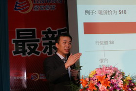 會上,中國中央電視臺經濟頻道《第一時間》主編張鴻先生邀請經世媒體COO羅元玲女士和法興證券衍生工具部董事(亞洲-日本除外)李錦先生作了開場致詞。接著李錦先生就“香港窩輪市場特點、真實例子、投資策略、風險與回報”作了專題演講,希望以港股及權證的市場發展,作為廣大投資者的借鏡。