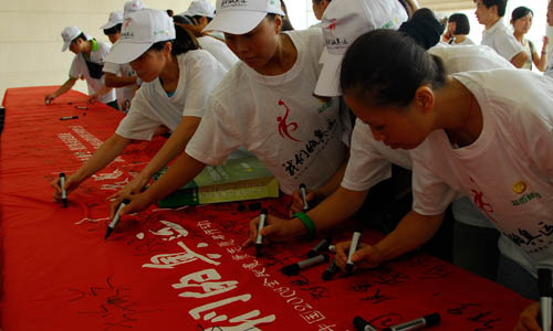 - 志愿者在百米長卷簽名 | 2008-07-23