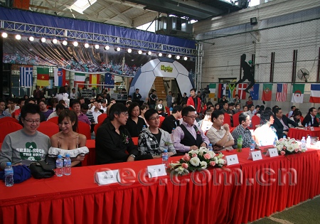 參加發布會的央視網總經理汪文斌、優酷網CEO古永鏘、體壇傳媒高級副總裁顏強、前國腳高峰、江津、曹限東、知名足球記者、北京電視臺主持人兼評論員董路等嘉賓在禮儀小姐的引領下,一一在主席臺前排就坐,靜候發布會的開始。