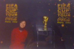 真想沖過去抱起大力神杯親吻一下啊,哪怕被保安立馬拖出去也算值了。也許這座杯上還有某位大牌明星遺留下來的口水,最好是小貝,歐文也還好了,如果是大羅……大羅也還OK,如果是小羅就算了吧。也許您看出來了,我就是一個偽球迷,認識的也就那幾位,因此能與大力神杯合影,現在回想起來,依然覺得神奇。
