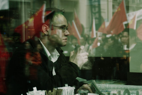 窗外招展的紅旗和屋內的安靜形成強烈的反差。
