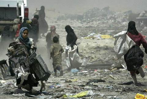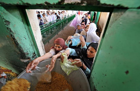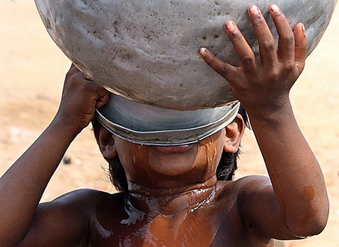孟加拉國首都達卡,一個孩子正在大口飲水,當地正在遭受嚴重的旱災