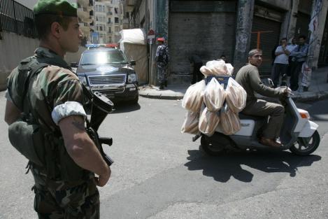 每個人都有自己的角色,一個男人在運送食品,一個士兵在站崗