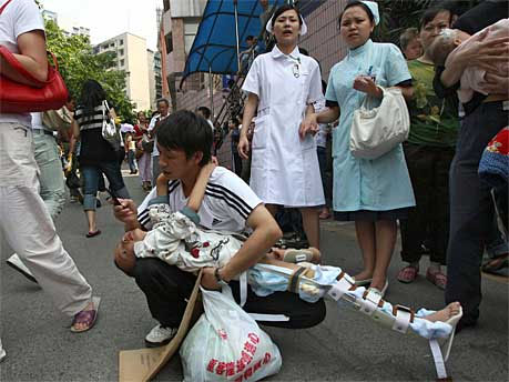 重慶,處于安全考慮,醫院的病人被轉移至大街上。