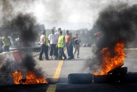西班牙:為了對抗居高不下的油價,漁民在公路上用燃燒的輪胎設置路障,堵塞了連接西班牙和葡萄牙的道路。