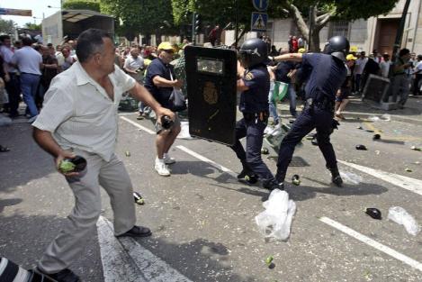 網絡版專稿 記者 盛超 在與抗議的貨車司機談判失敗后,西班牙政府開始動用警察趨散示威者。他們動用了25000名警察,希望能打通被示威者阻斷的公路。