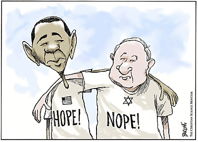 “是的,我們能夠”并不是一個十分適合中東外交的口號。奧巴馬和內塔尼亞胡的會見說明了這一點。奧巴馬知道中東外交的主流氣候。他知道以色列對于西方利益以及民主理念的重要性。他只是簡單的認為,以色列的安全將會得到鞏固,只要停止定居點的擴張和達到2個國家共處的理想之后。但就在內塔尼亞胡先生的外交政策看起來是強硬無法妥協的時候,他所關心的問題,也的確不是空穴來風毫無理由。