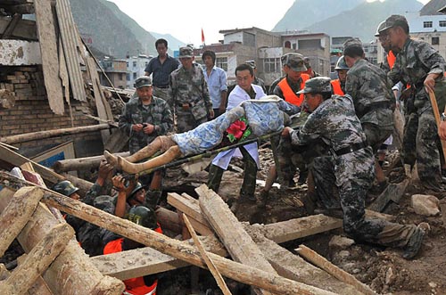 8月7日,暴雨驟降,舟曲被泥石流掩埋在22英尺后的土石下。營救工作艱難進行,因為當地土質過于松軟,重型機械無法停放,救援人員不得不用鐵鏟、鋤頭甚至是雙手進行挖掘幸存者。