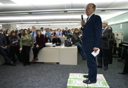 默多克耐心不多,所以他的講話簡短而直達要點——他宣稱自己和其他人一樣了解道瓊斯公司尤其是《華爾街日報》延續多年的精神傳統,他宣稱自己樂觀看待全球經濟和信息革命將給報紙帶來的影響。他稱這將帶給《華爾街日報》一個機會成為“世界上卓越的金融信息及評論的來源?!?nbsp;