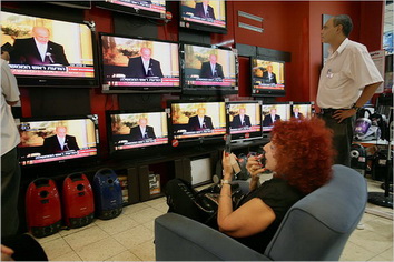 一些實際的措施,比如阻止巴勒斯坦人在加沙繼續發射火箭,或者是釋放被逮捕的以色列士兵,這的確開始了以色列方面跟哈馬斯關系緩和的進程??赡艿慕Y果是在埃及進行某種?;饏f議,而這些進程將在奧爾默特離職之后繼續進行,就像今春通過土耳其進行的以色列和敘利亞之間的談判一樣。不僅如此,任何反對伊朗的舉動,也不僅僅只是依賴于奧爾默特的政治立場就能夠推動的。
