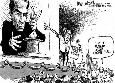 旁觀者:現在他又要怪罪大衛科波菲爾了。(他把大規模殺傷性武器變沒了?)
