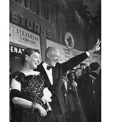 艾森豪威爾總統的太太與他一起登臺,慶祝他的勝利。