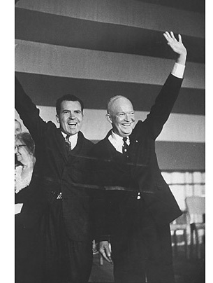 共和黨總統艾森豪威爾與他年輕的副總統尼克松一起宣布自己的勝利。
