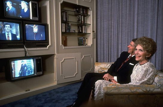 南希和里根在洛杉磯的一家賓館里觀看電視新聞。