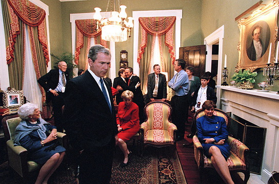 德克薩斯州,布什一家人正在觀看現場直播。