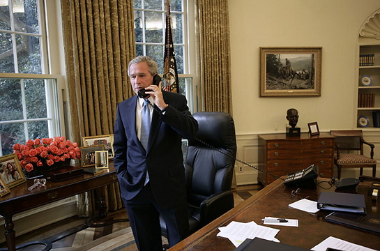 克里宣布失敗之后,小布什打電話給他。