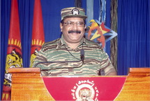 碩大的腰圍,讓人害怕的粗壯脖頸,刮得干干凈凈的胖臉和向后梳得整整齊齊的頭發,一身色彩鮮艷的休閑裝,這就是猛虎組織的創建者和領導人韋盧皮萊·普拉巴卡蘭。在過去30年時間里面,這個冷酷的指揮官所進行的冷酷戰爭,目的都是為了要給斯里蘭卡的少數派泰米爾人建立一個獨立的“Eelam”(家園)。而他的行動,搖搖晃晃的行走在為自由而奮斗,以及徹底的恐怖主義懸崖之間。