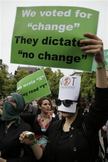 在德黑蘭及伊朗其他城市,穆薩維的支持者們正通過示威活動表達一個強烈的訊息?,F年26歲的塞赫姆·伯爾加尼是改革派網站“伊朗外交”的編輯,與穆薩維關系密切,他說:“政府不在乎我們的選票,而穆薩維則支持我們的選票,所以我們擁護他。 ”