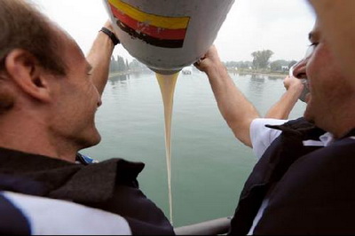9月16日,在比利時南部城鎮錫奈附近,憤怒的比利時奶農,把300萬公升,價值約160萬美元的牛奶,倒在牧牛的草地上,以抗議牛奶價格過低。從今年春天起,奶價下跌了四成,奶農們說,如果再不提高奶價,他們將不得不放棄從事這個行業。
