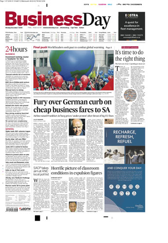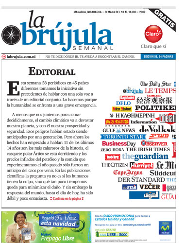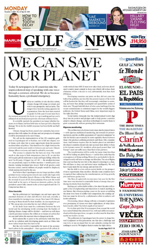 以下,便是12月7日來自全球35家報紙的社論頭版封面: