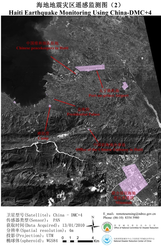 地震發生后,國家減災中心通過各種方式獲得了海地地震災區的衛星遙感數據。以下便是來自國家減災中心的數據: