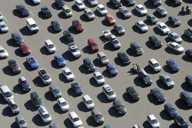 7月,法國東部一處高速公路收費站外排著長長的車隊。