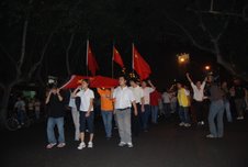 網絡版專稿 駐川記者 盛超 20日晚上十點半左右,成都天府廣場上有市民自發組織的游行紀念活動。據記者目測,參加人數在300以上。在現場有居民主動維持現場秩序,整個現場井然有序。