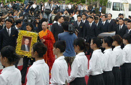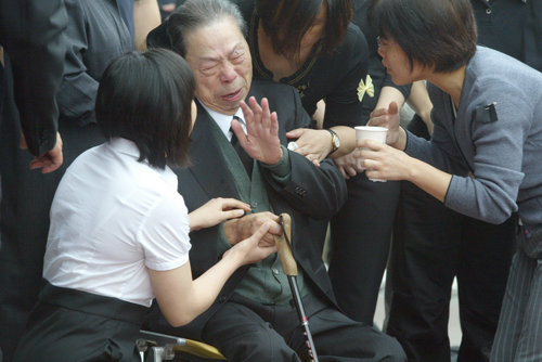 王永慶的女兒王瑞華(上圖左二)手捧遺照,引領棺木進入會場。當時場面非常令人心痛,王永慶的胞弟王永在在等待靈柩到達前,淚流滿面、大聲哭著呼喊“阿兄!阿兄!”。