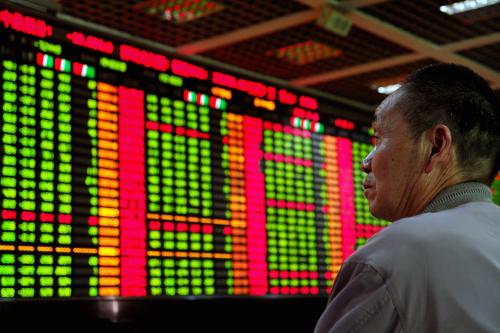 2008年10月16日,股民在江蘇淮安中投證券股份有限公司觀看股市行情,