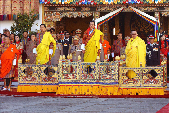 加冕禮于當地時間6日6時30分開始,第四世國王吉格梅·辛格·旺楚克按照佛教儀式,將象征王權的王冠授予其子、第五世國王吉格梅·凱薩爾·納姆耶爾·旺楚克。