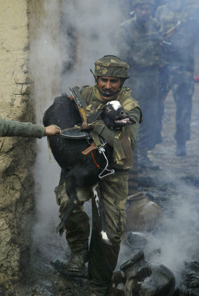 印度陸軍士兵營救在 Chewdara 槍戰中被困的山羊