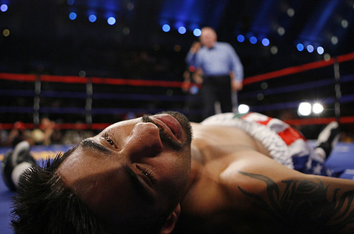 新澤西州大西洋城,超輕量級拳擊手 Gustavo Mejia 在第一輪 58 秒時被對手 Demetrio Soto 擊倒
