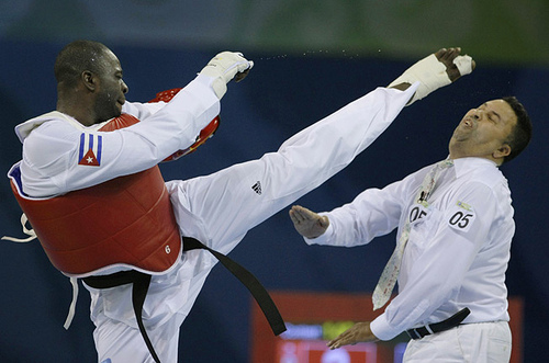 北京奧運會男子80公斤級跆拳道比賽中,脾氣火爆的古巴選手 Valodia Matos 在銅牌爭奪戰時怒踢裁判