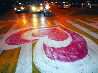 經濟觀察網 實習記者 李夢竹 胡斌和“70碼”事件全國皆知,事發后,杭州方面為警示“70碼”事件在杭州莫干山路浙江電視臺門口設立了首條愛心斑馬線。斑馬線的中間印有大大小小的紅色愛心圖案,寫著“愛心路上,有我有你”的溫馨標語。原先的白色線條改為黃底白條相間,長為14米,寬度由4米增加到了7米,非常顯眼。