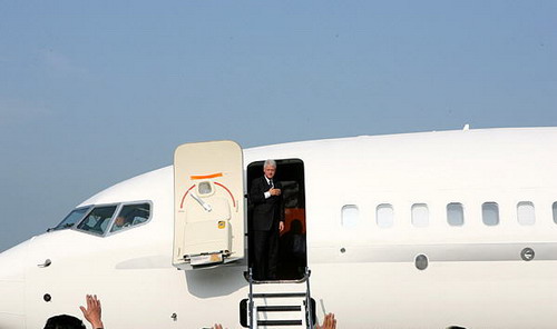 美國前總統克林頓準備乘專機離開朝鮮首都平壤。新華社/圖