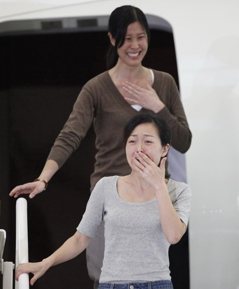 8月5日,被釋放的兩名美國女記者抵達美國加利福尼亞州的伯班克。新華社/圖