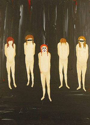 此外,諾布爾的身上還有一個未知的無名“人格”,她喜歡用黑色畫一些蒙著眼睛的裸體兒童的畫面,諾布爾為她取名“里婭”。里婭所畫的顯然是她童年時代遭遇虐待的記憶。