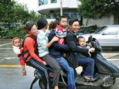 電動車最牛超載:昨日下午,昆明近華浦路上行駛的一輛電動車竟乘坐了7人,車上的人一臉笑意,旁觀的人一臉擔心。