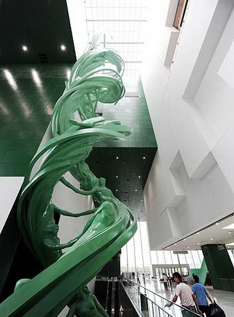 中國科技館新館的巨型室內雕塑“生命螺旋”是17對手拉手的男人和女人組成的巨大DNA雙螺旋結構。 它位于中國科技館新館的南大廳,由新館建筑物的地下一層直沖頂層的天窗,全高約47米,直徑6.4米,是中國科技館新館的標志性展項之一。