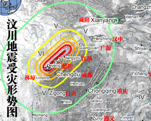 汶川地震受災形勢圖